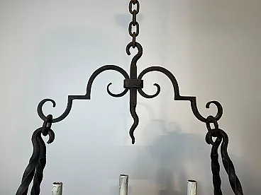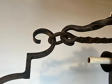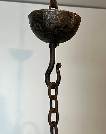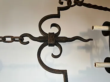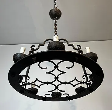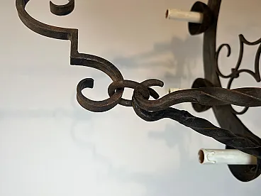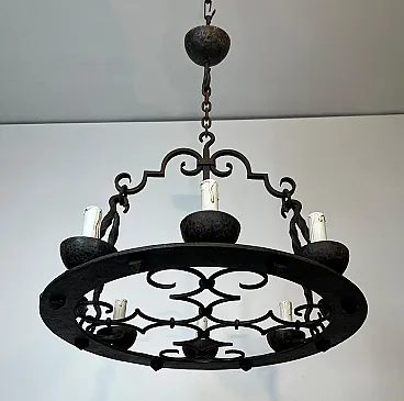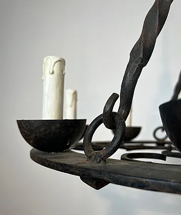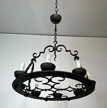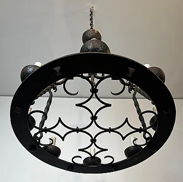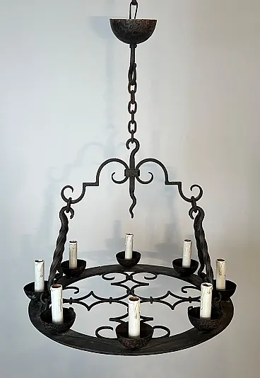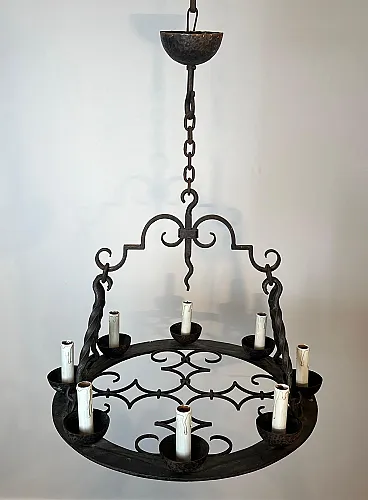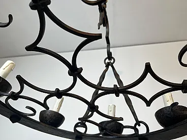 Lampadario rotondo in ferro battuto a 8 luci in stile gotico, anni '50