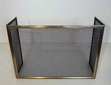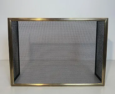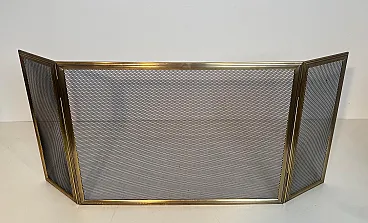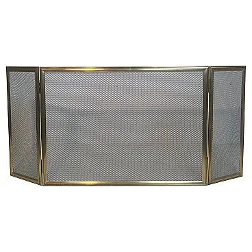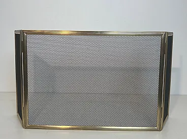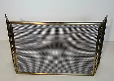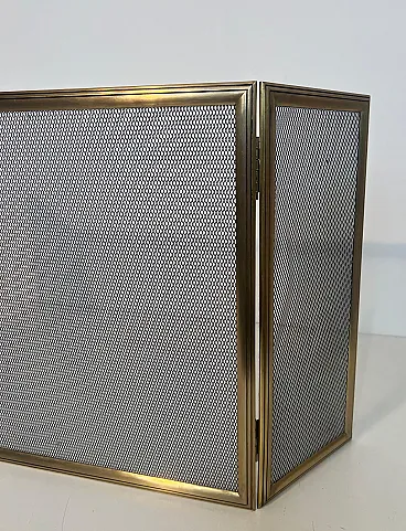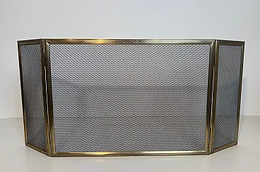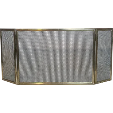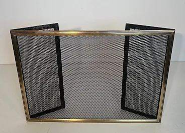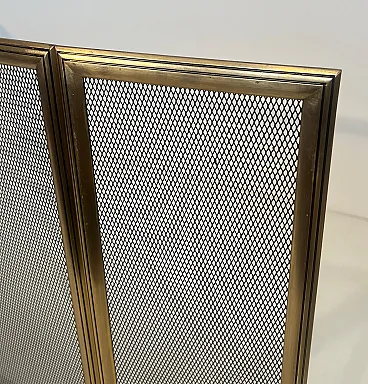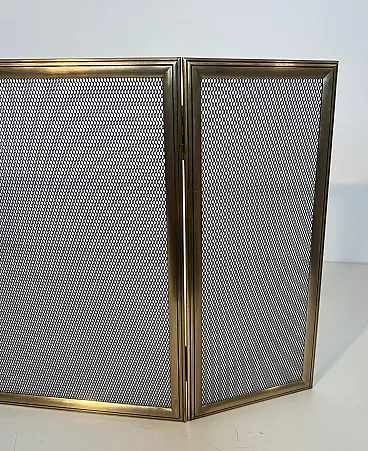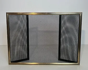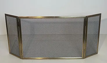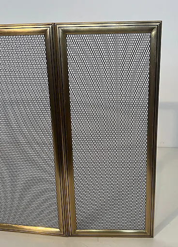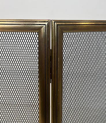 Paravento per caminetto a 3 pannelli in ottone e griglia, anni '70
