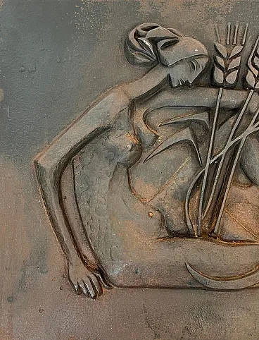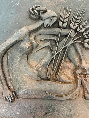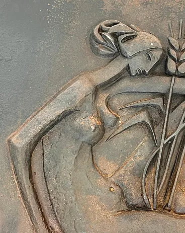 Focolare in ghisa raffigurante una donna, anni '50