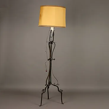 Torcere in ferro battuto, poggiante su base a tre piedi. (da rielettrificare) Italia, XVIII Secolo.