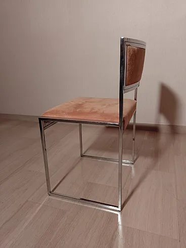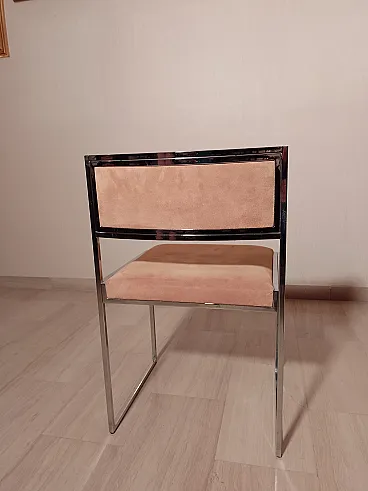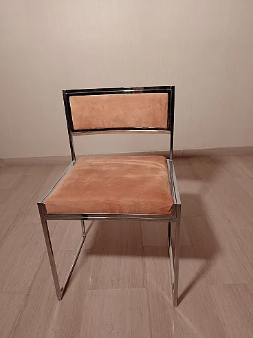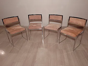 4 sedie in metallo cromato e pelle scamosciata, anni '70