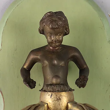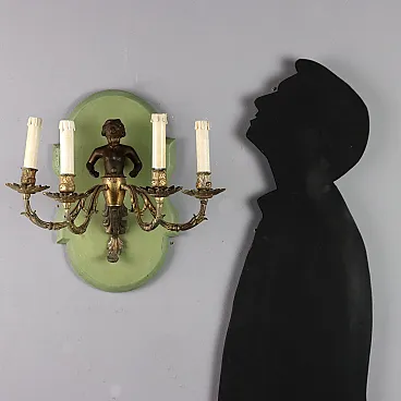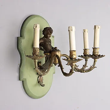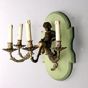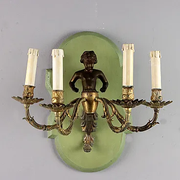 Applique porta candela a 4 braccio con putto in bronzo, '900