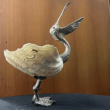 Pellicano con Conchiglia, scultura di Gabriella Binazzi, anni '70