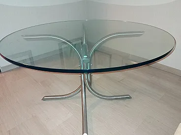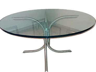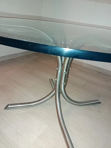 Tavolo in metallo cromato e vetro, anni '70