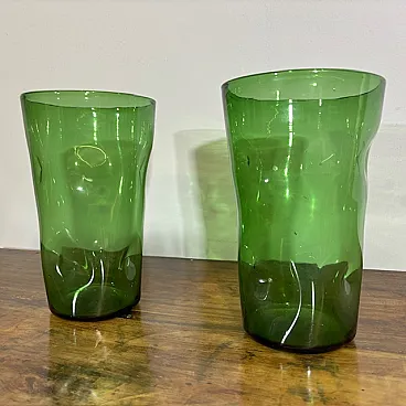 Coppia di Vasi vetro Empoli effetto “Schiacciato“, 1940