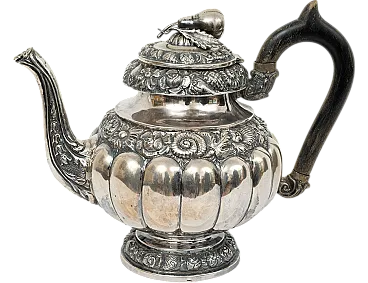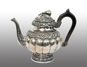 Descrizione: Caffettiera antica Luigi Filippo napoletana in argento sbalzato appartenente alla metà del XIX secolo.