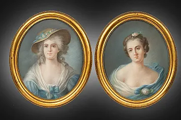 Coppia di pastelli Napoleone III raffigurante ritratti di donne, '800