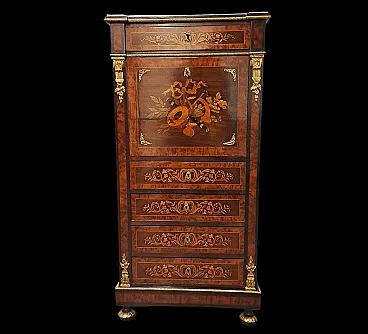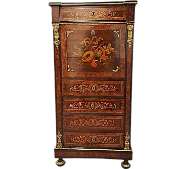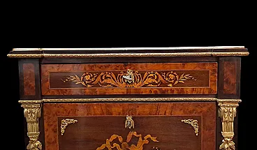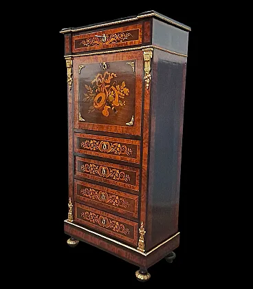 Piccolo secretaire impiallaciato in radica di tuia e bois de rose.