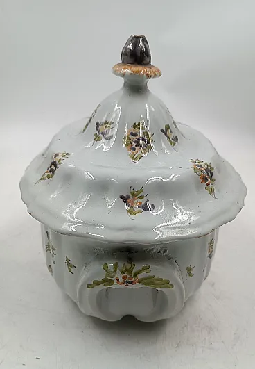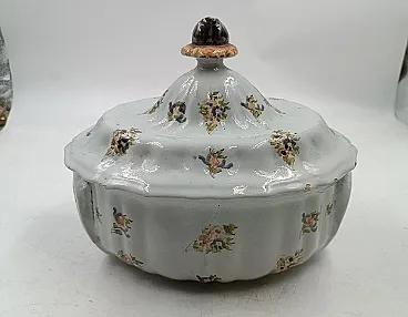 Zuppiera in maiolica decorata con motivi floreali, metà '700