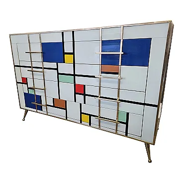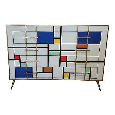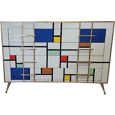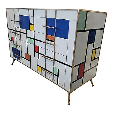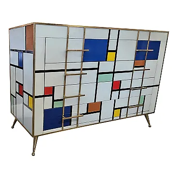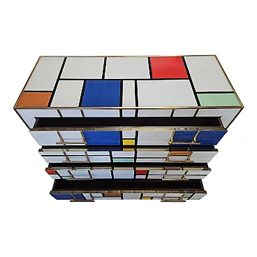 Comò a quattro cassetti in vetro di Murano stile “Mondrian”, anni '90