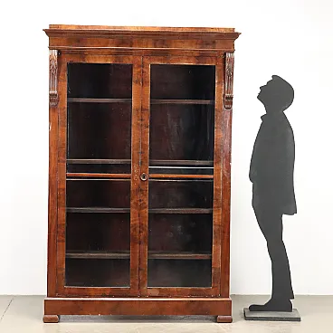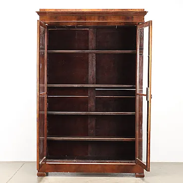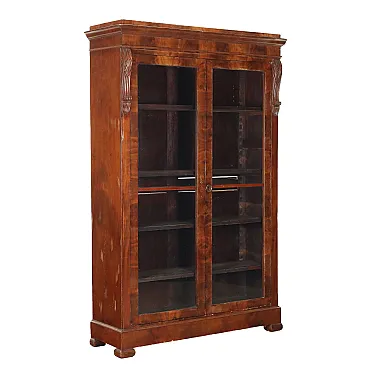 Libreria Luigi Filippo in pioppo impiallacciato con vetrina, '800
