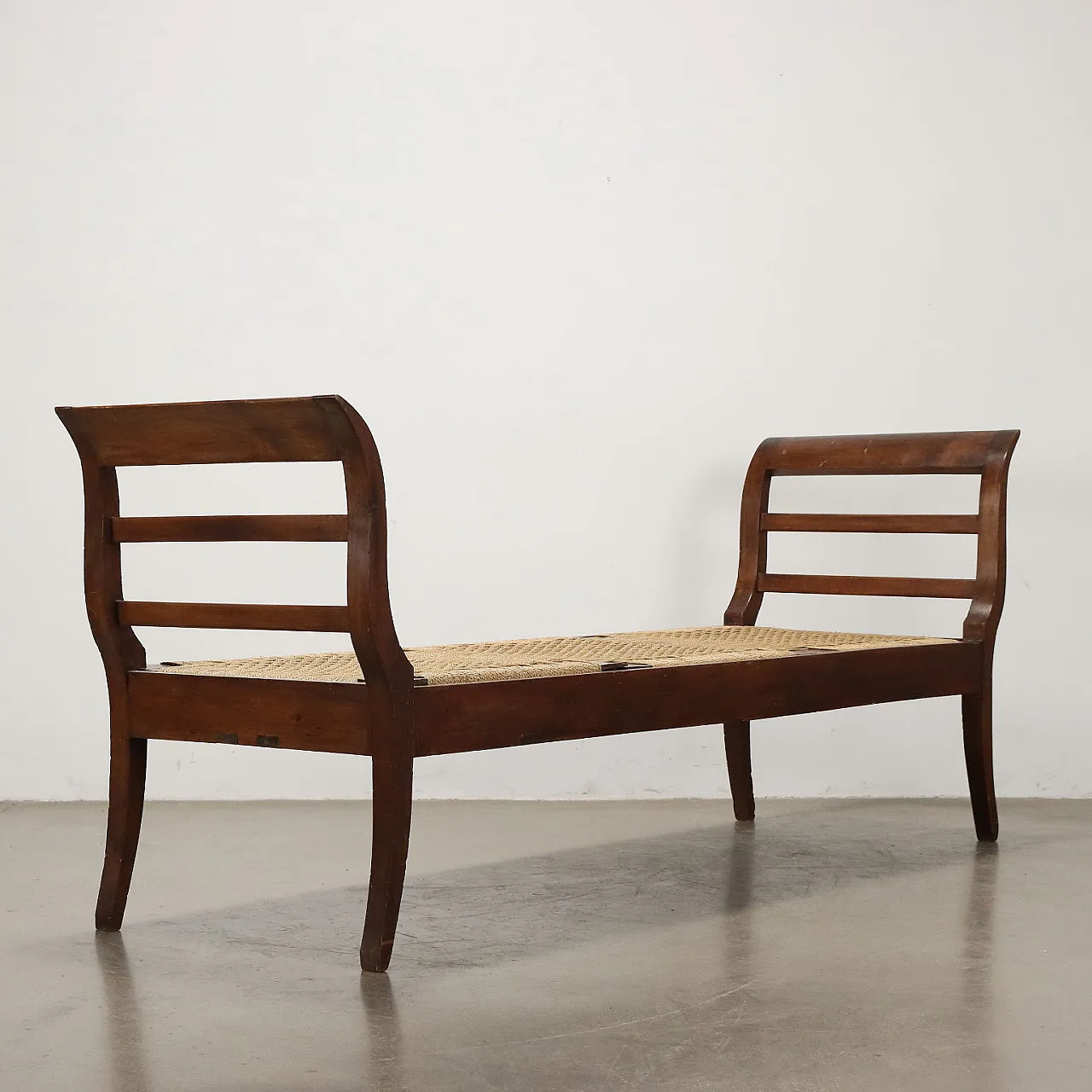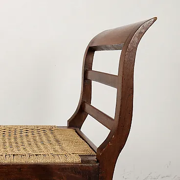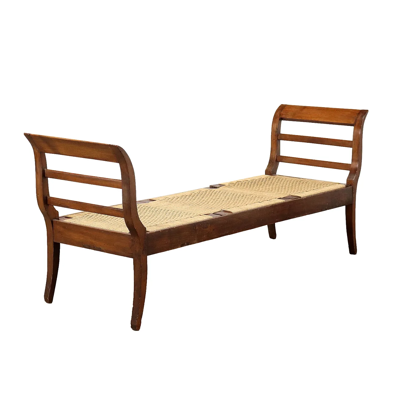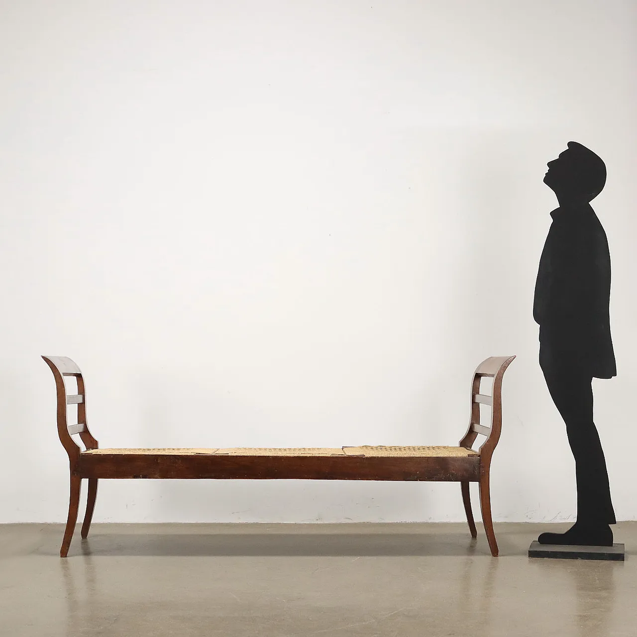 Divano panca Impero a barca con seduta in paglia di Vienna, '800