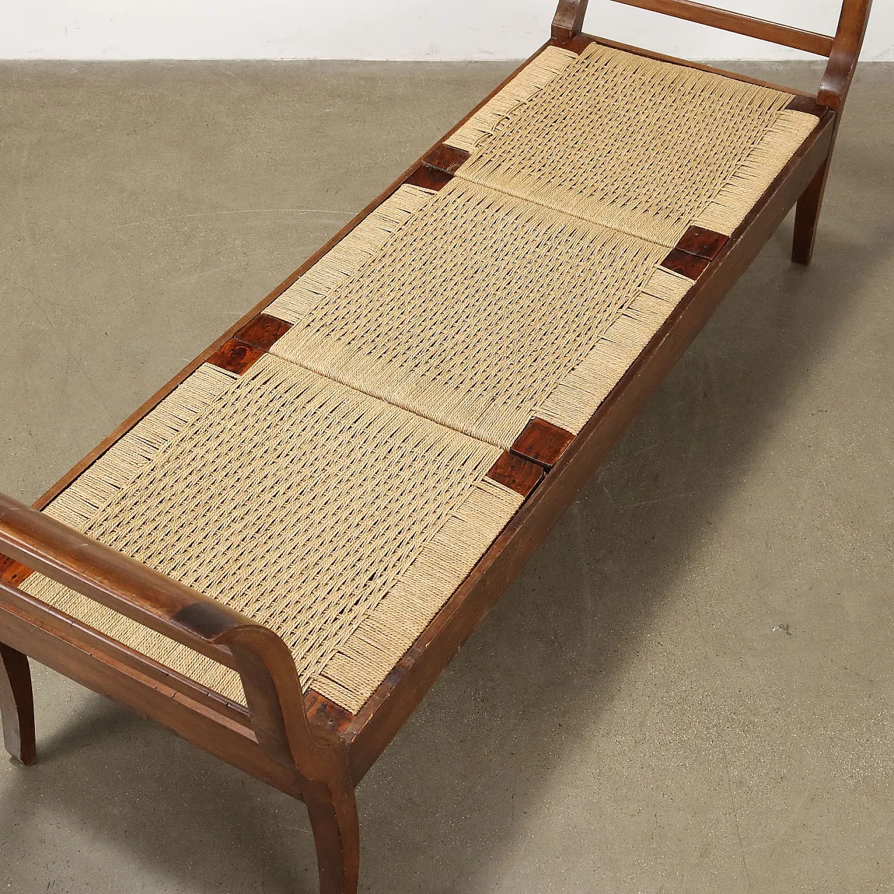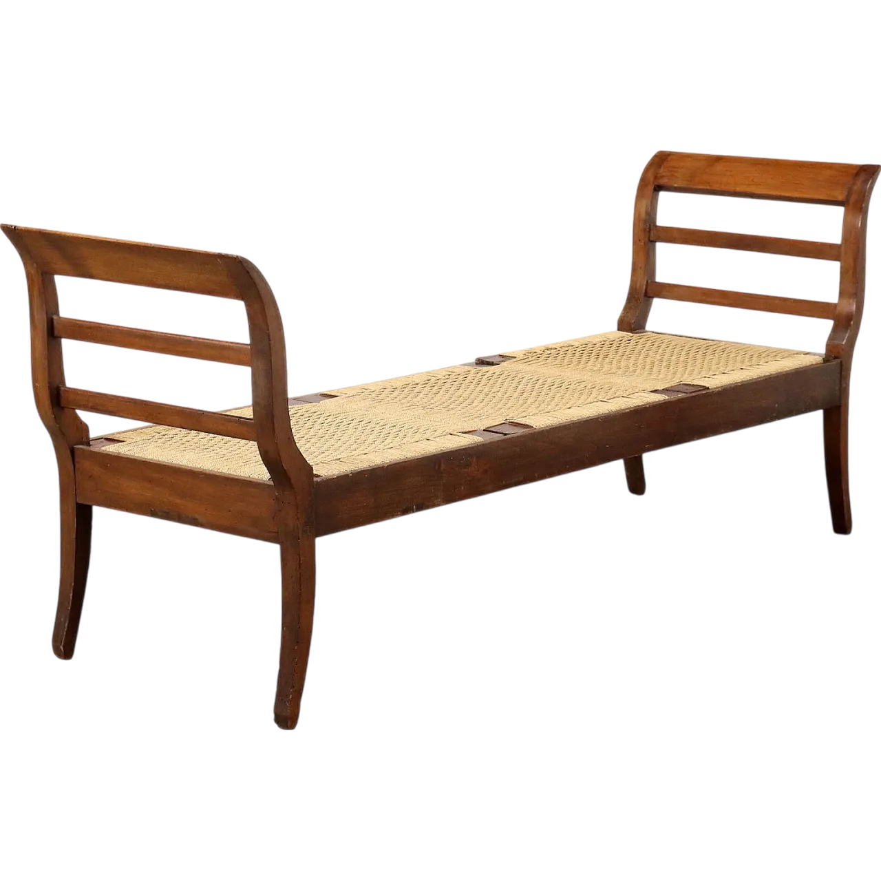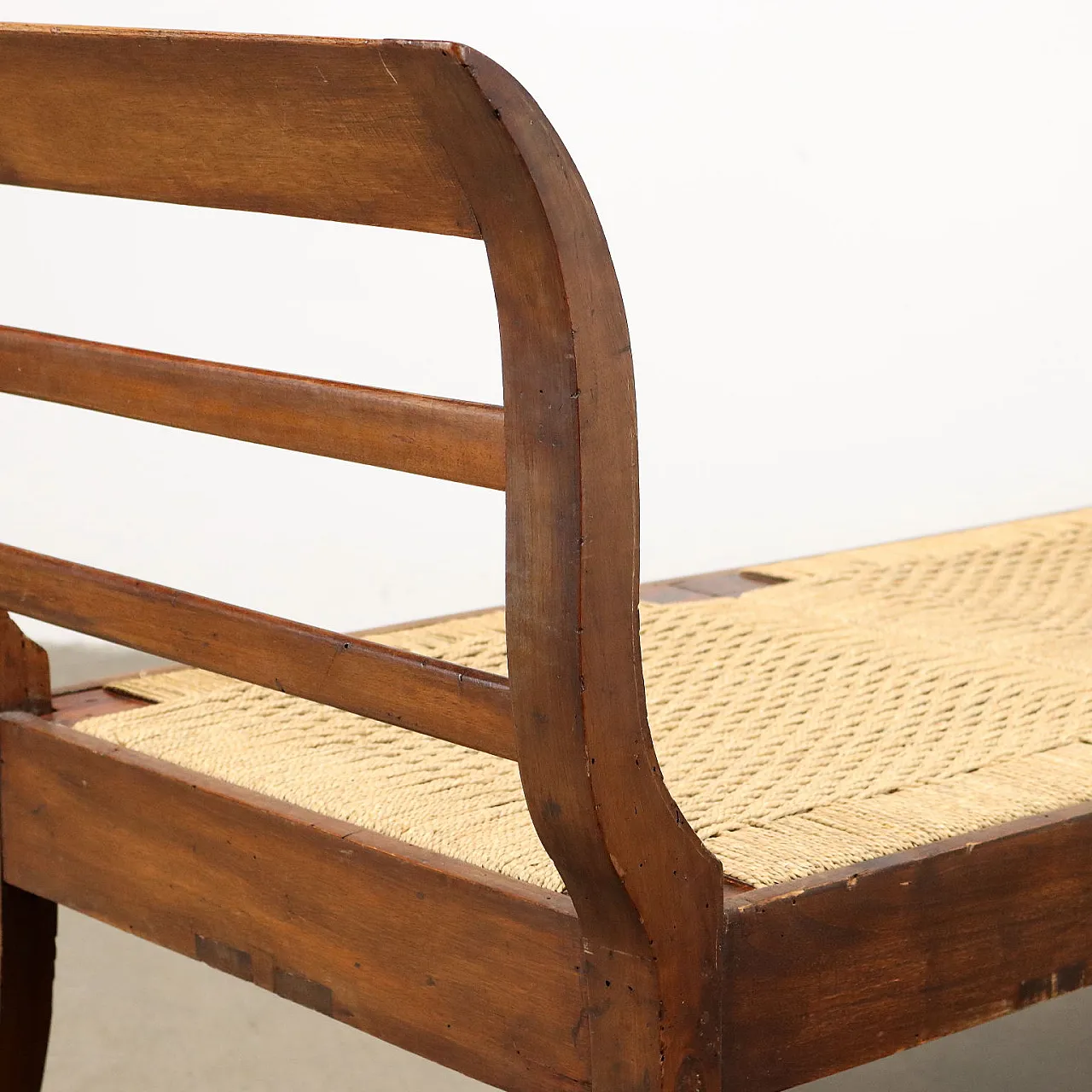 Divano panca Impero a barca con seduta in paglia di Vienna, '800