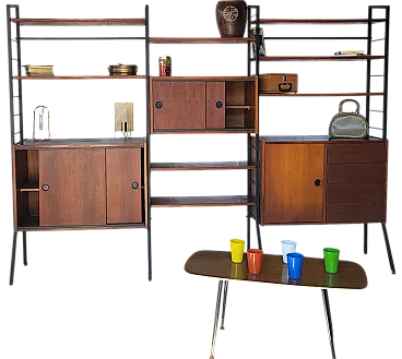 Libreria in stile svedese anni '60, la struttura è modulare e permette diverse soluzioni di montaggio.