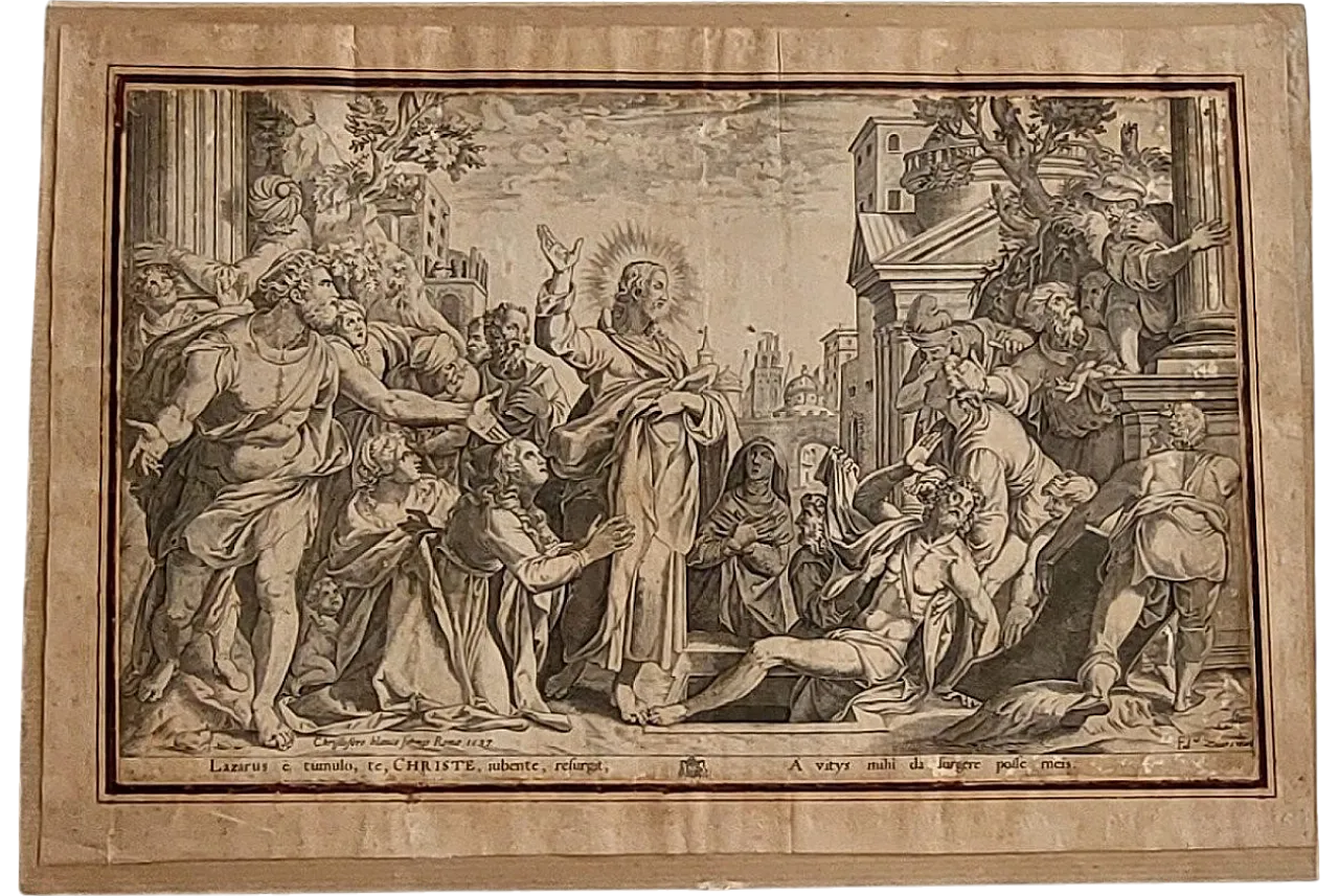 Resurrezione di Lazzaro, incisione di Cristoforo Bianco, '500