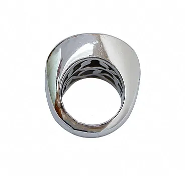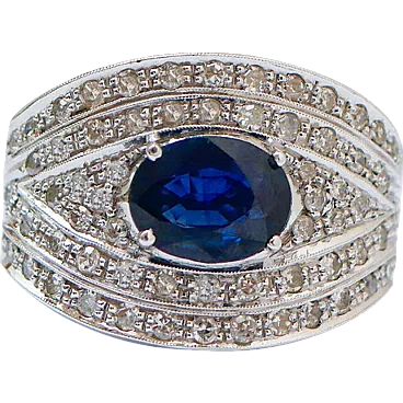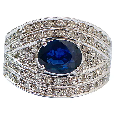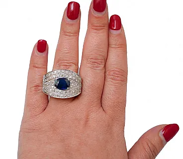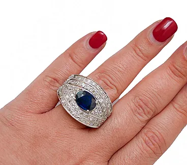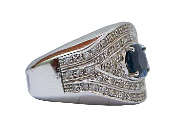 Anello a fascia in oro bianco con zaffiro e diamanti, anni '50