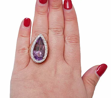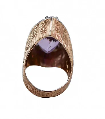 Anello con ametista, diamanti e oro rosa, anni '70
