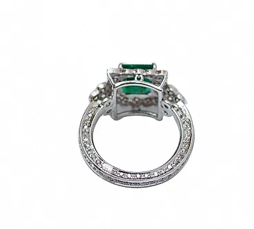 Anello di platino con smeraldo e diamanti, anni '60