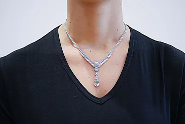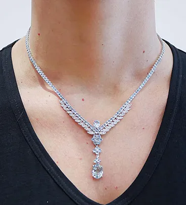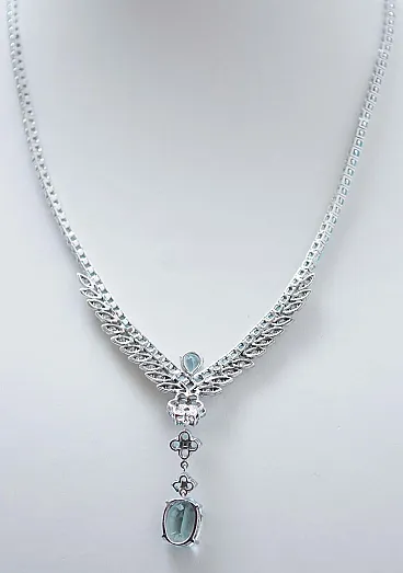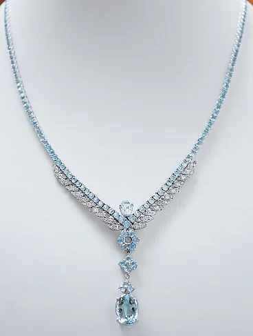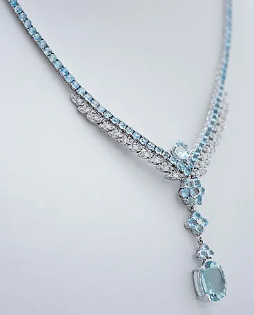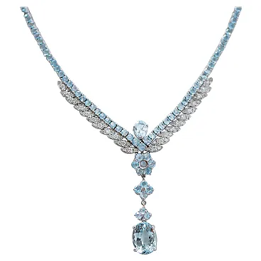 Collana tennis in oro con topazi acquamarina, diamanti, anni 2000