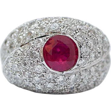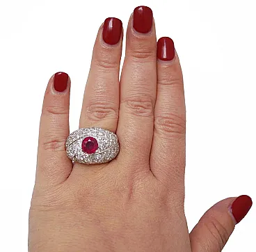 Anello con rubino, diamanti e oro bianco 14 carati, anni '60