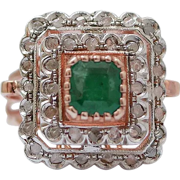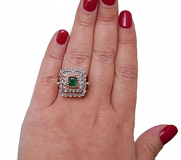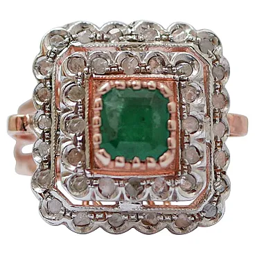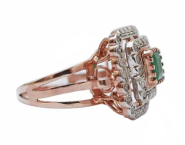 Anello con smeraldo, diamanti, oro rosa e argento, anni '60