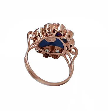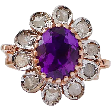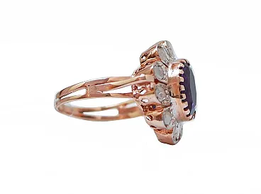 Anello floreale in ametista, diamanti, oro rosa e argento, anni '70