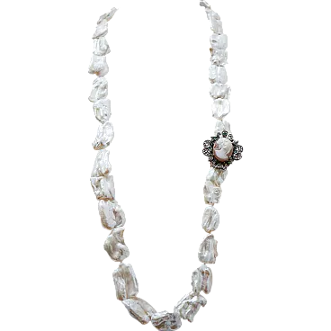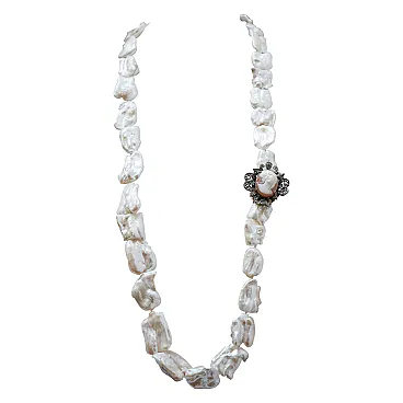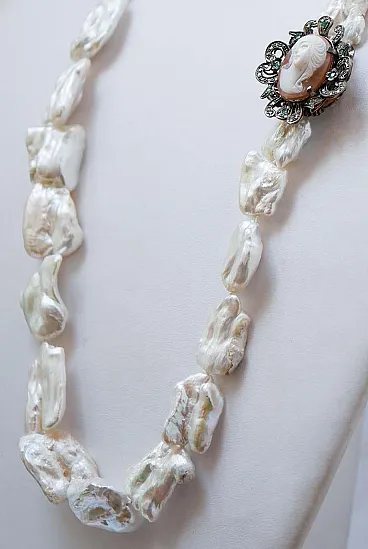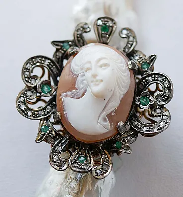 Collana barocca con perle, smeraldi, cammeo, diamanti, oro, anni '50