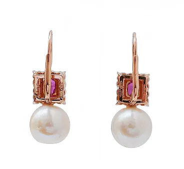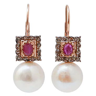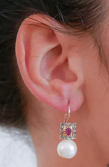 Orecchini con perle, rubini, diamanti, oro e argento, anni 2000
