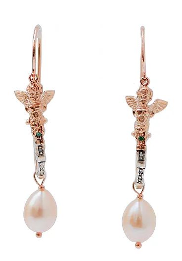 Orecchini con perle, tsavorite, diamanti, oro rosa e argento, anni '60
