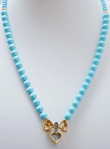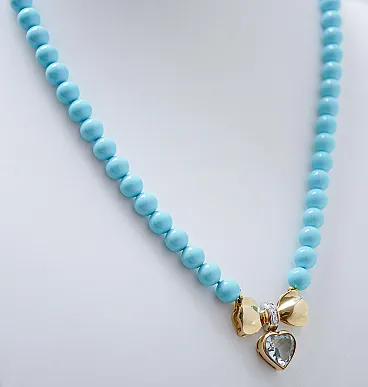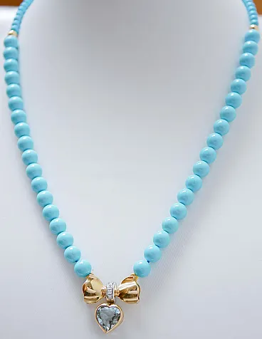 Collana in turchese, topazio, diamanti, oro giallo 18 carati, anni '50