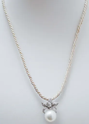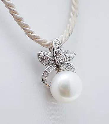 Collana con ciondolo in oro bianco 18 carati e diamanti, anni '70