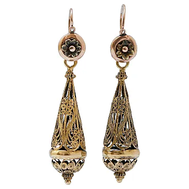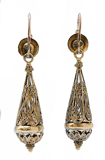 Orecchini pendenti in oro giallo, anni '50