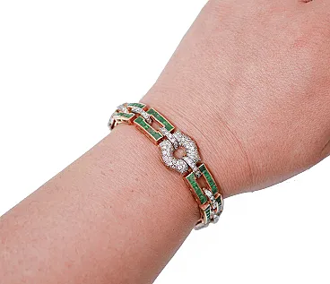 Bracciale di smeraldi, diamanti, oro rosa e argento, anni '70