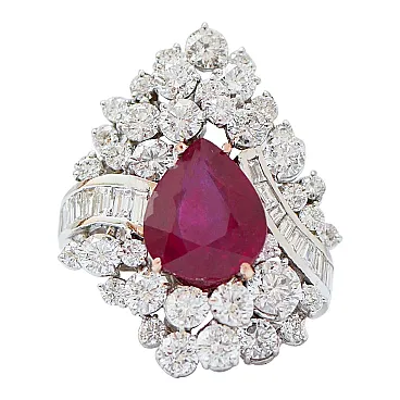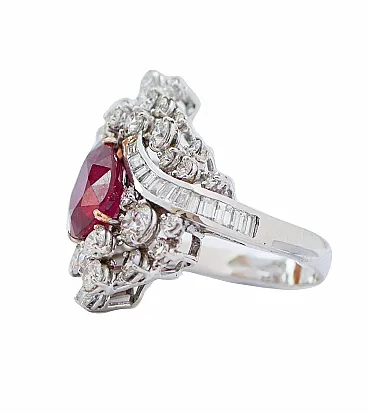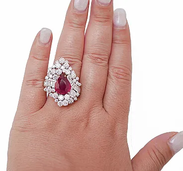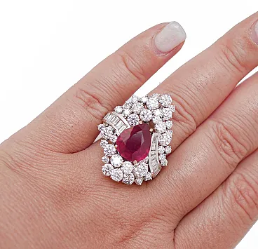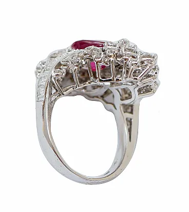 Anello con rubino, diamanti e oro bianco 14 carati, anni '60