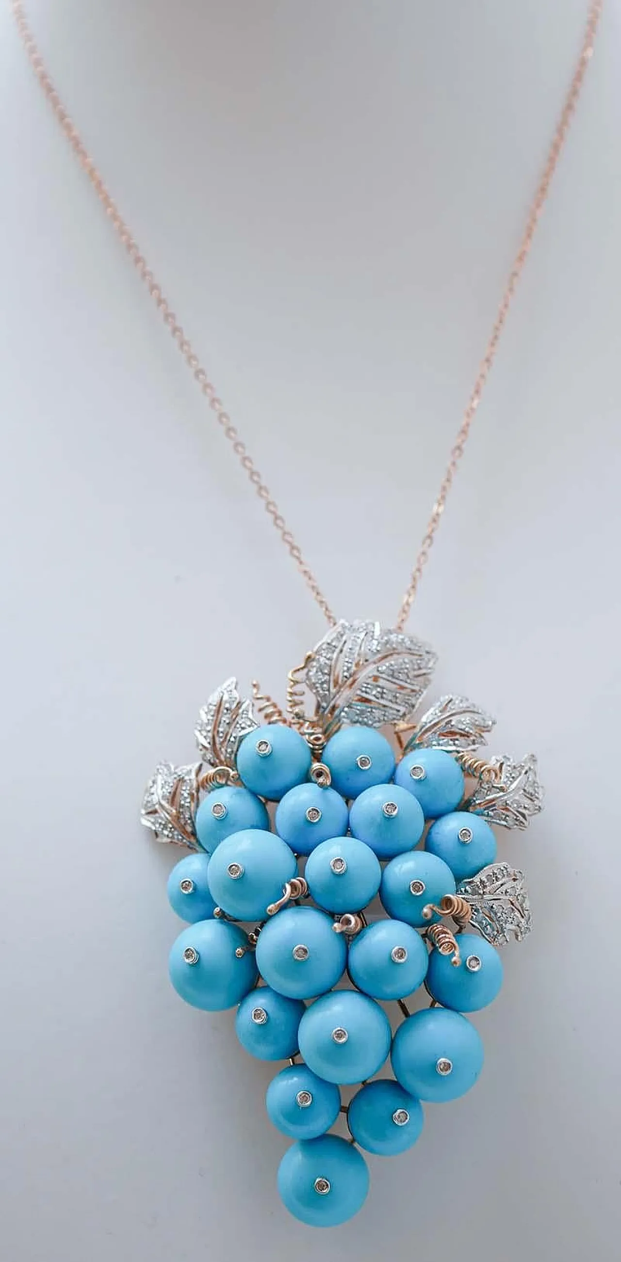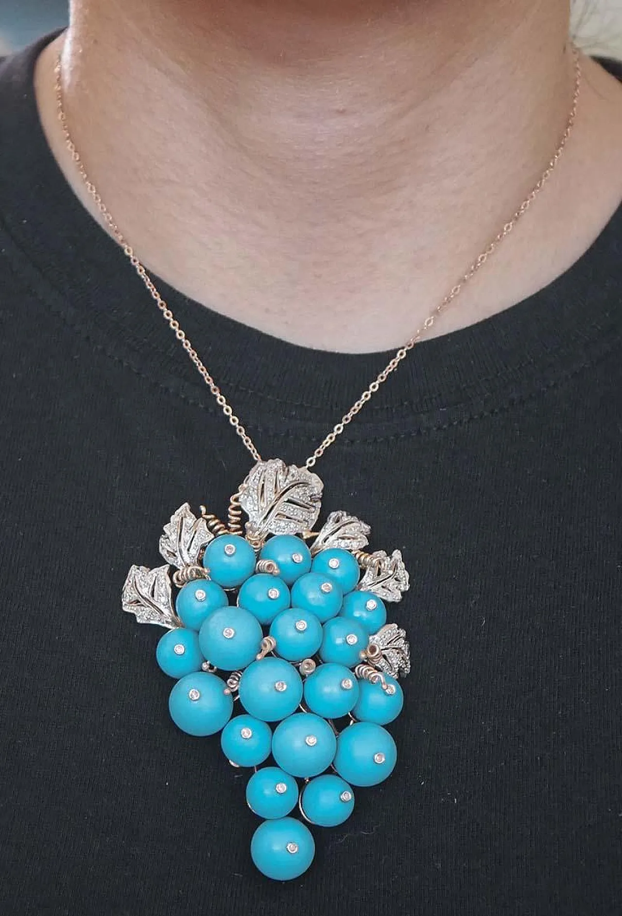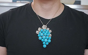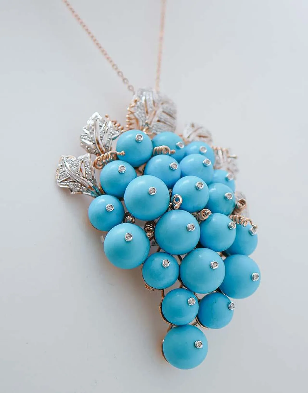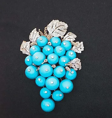 Spilla a grappolo in magnesite, diamanti, oro rosa e argento, anni '60