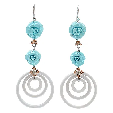Orecchini in turchese, agata, diamanti, oro, anni '50