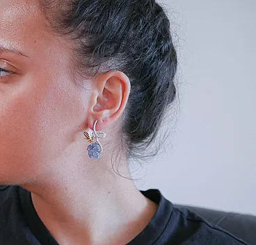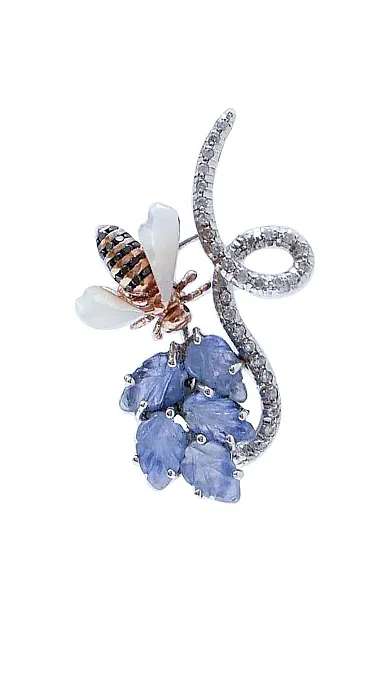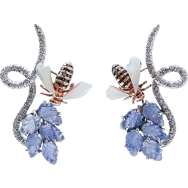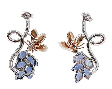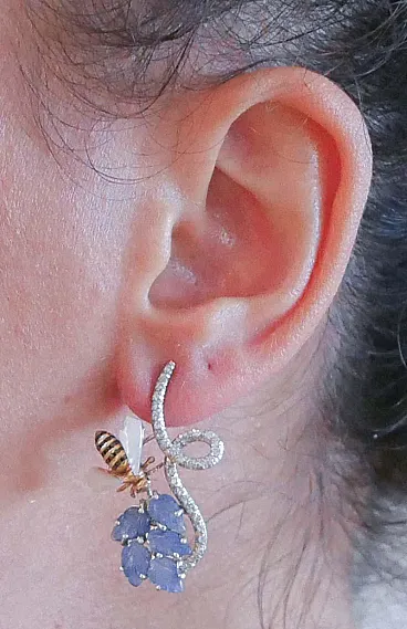 Orecchini oro, platino, zaffiri, pietre bianche, diamanti, anni '80