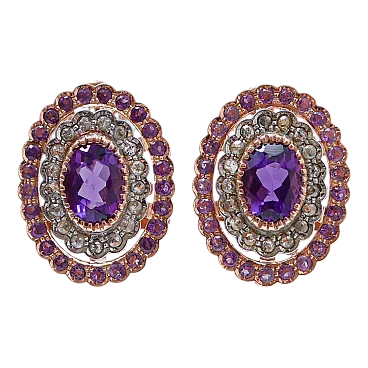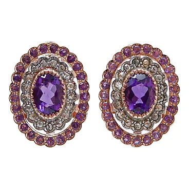 Orecchini con ametiste, diamanti, oro rosa e argento, anni '50