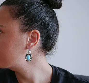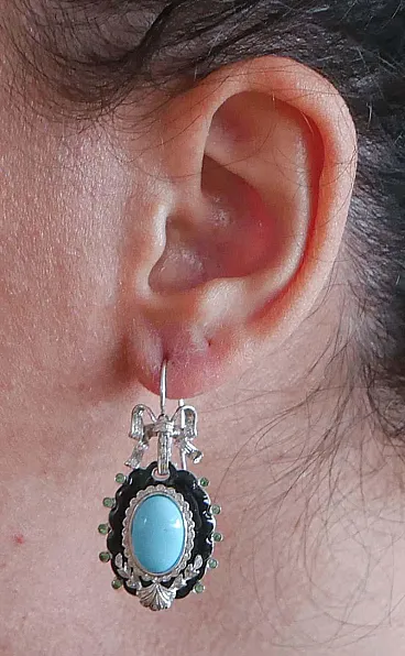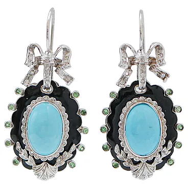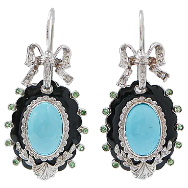 Orecchini in turchese, tsavoriti, diamanti, smalto, oro, anni '60