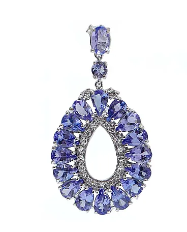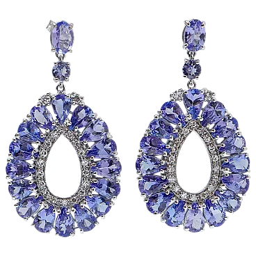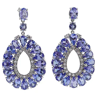 Orecchini pendenti in tanzanite, diamanti, oro bianco, anni '60