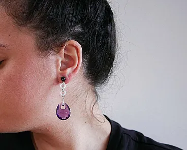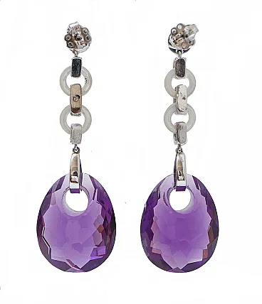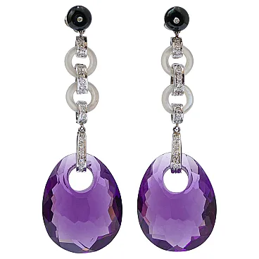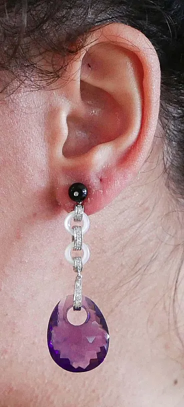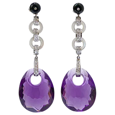 Orecchini di platino con ametiste, pietre, diamanti, onice, anni '70