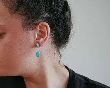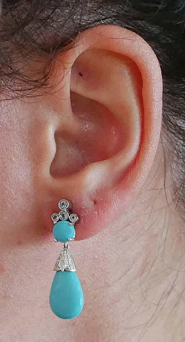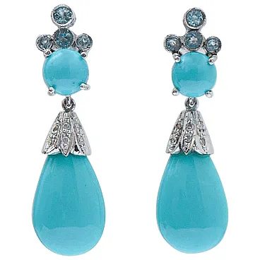 Orecchini in turchese, acquamarina, diamanti, platino, anni '70