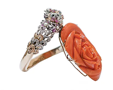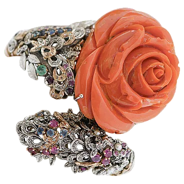 Bracciale in corallo, rubini, smeraldi, zaffiri, diamanti, anni '50