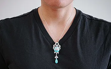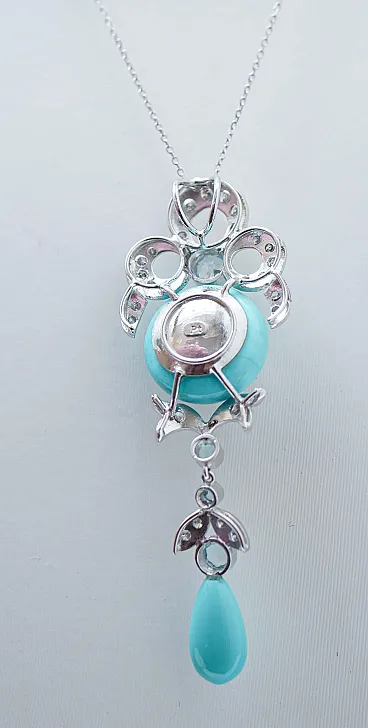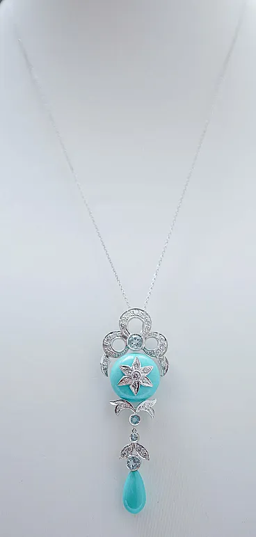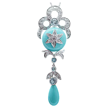 Collana in platino con turchese, topazi, diamanti, anni '70
