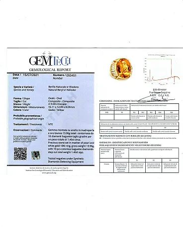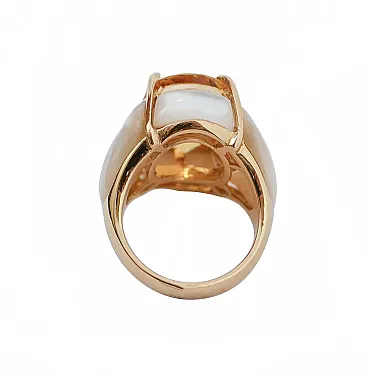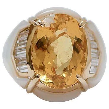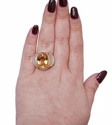 Anello in oro rosa con eliodoro, diamanti, pietre bianche, anni '60