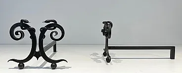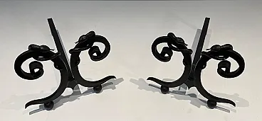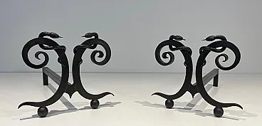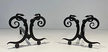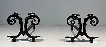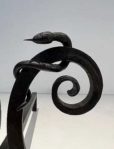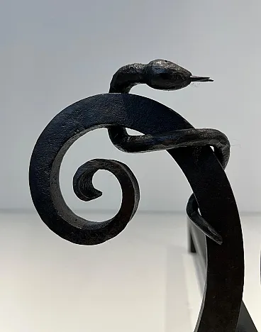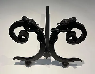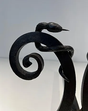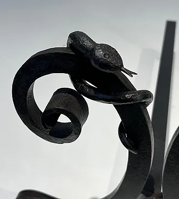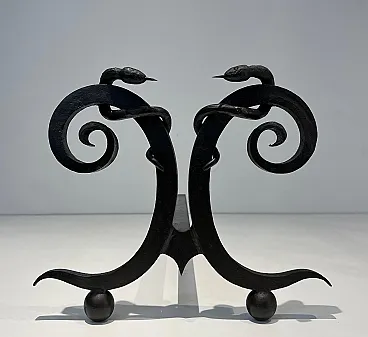 Coppia di candelabri in ferro battuto con serpenti, anni '50