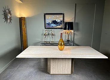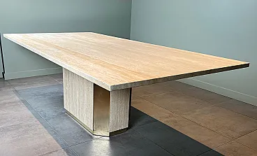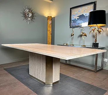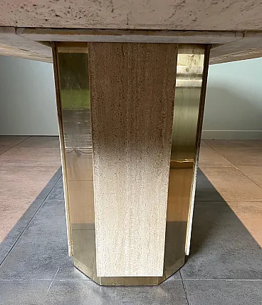 Tavolo da pranzo in travertino e ottone, anni '70