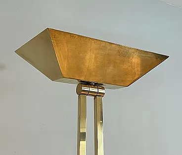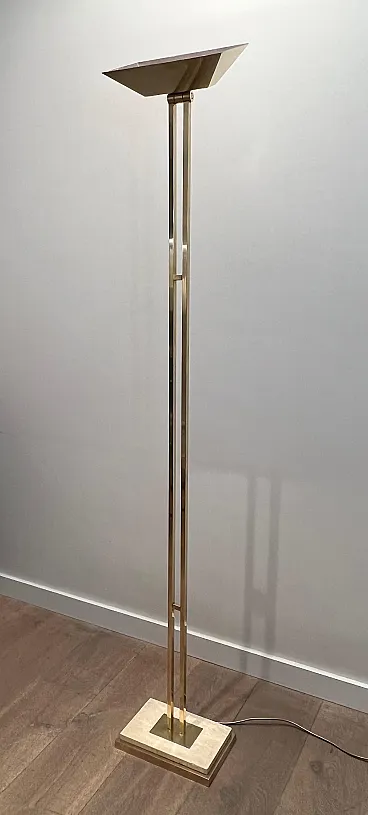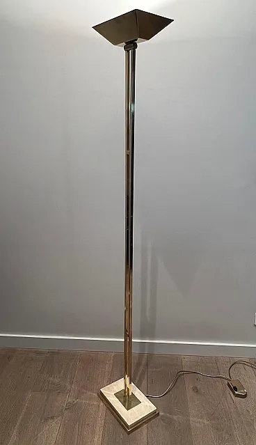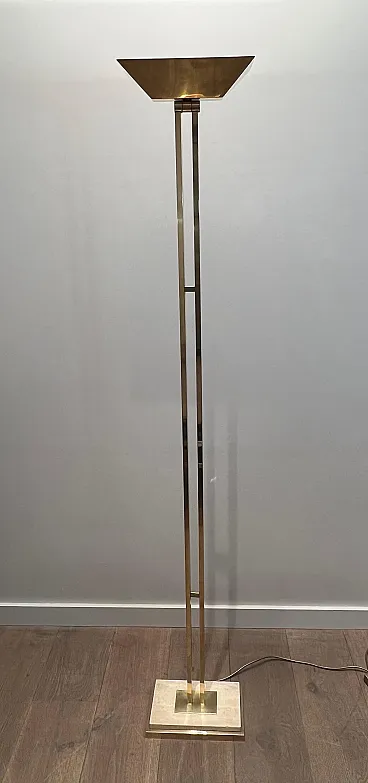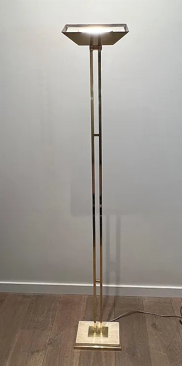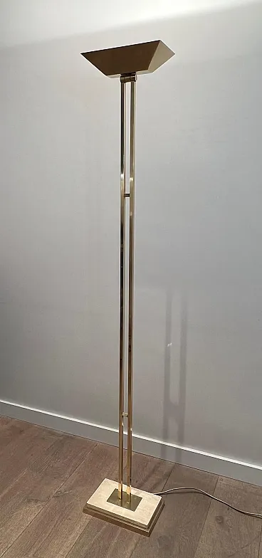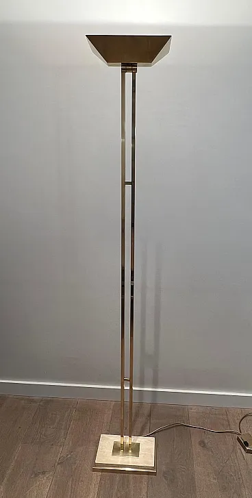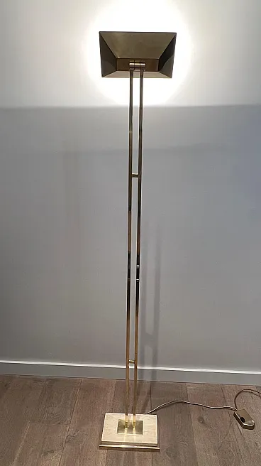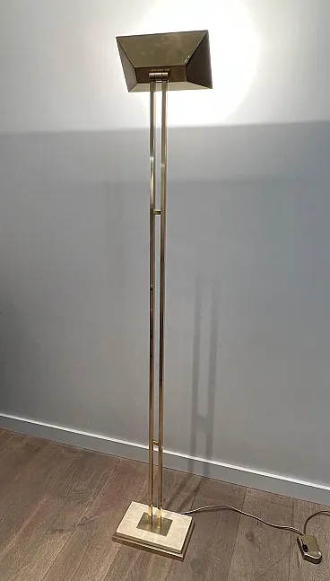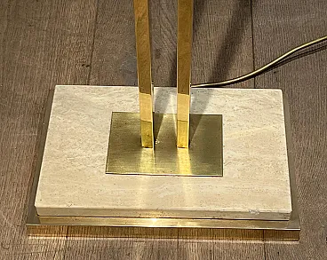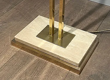 Lampada da terra in ottone Parquet su base in travertino, anni '70