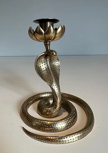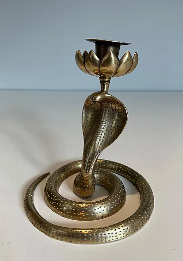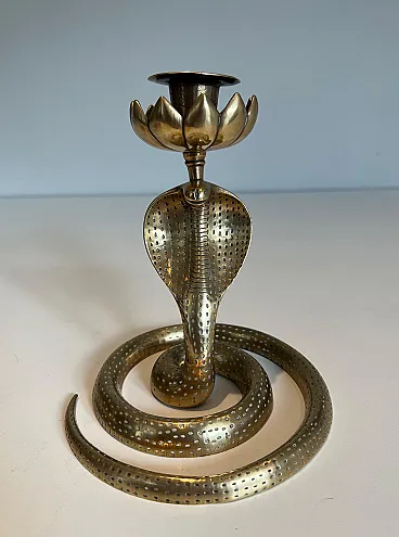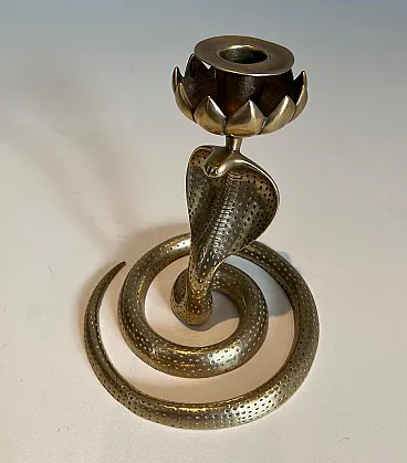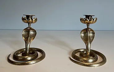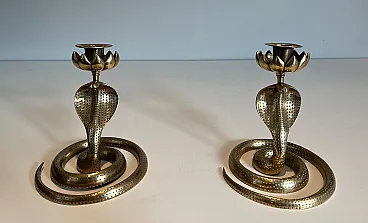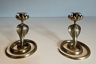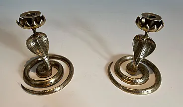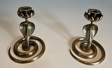 Coppia di candelieri Cobra in bronzo cesellato, anni '40