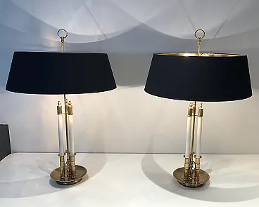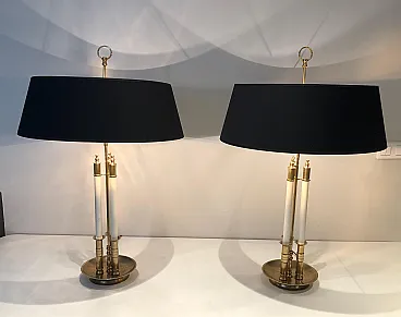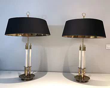 Coppia di lampade da tavolo in ottone e laccato, anni '70